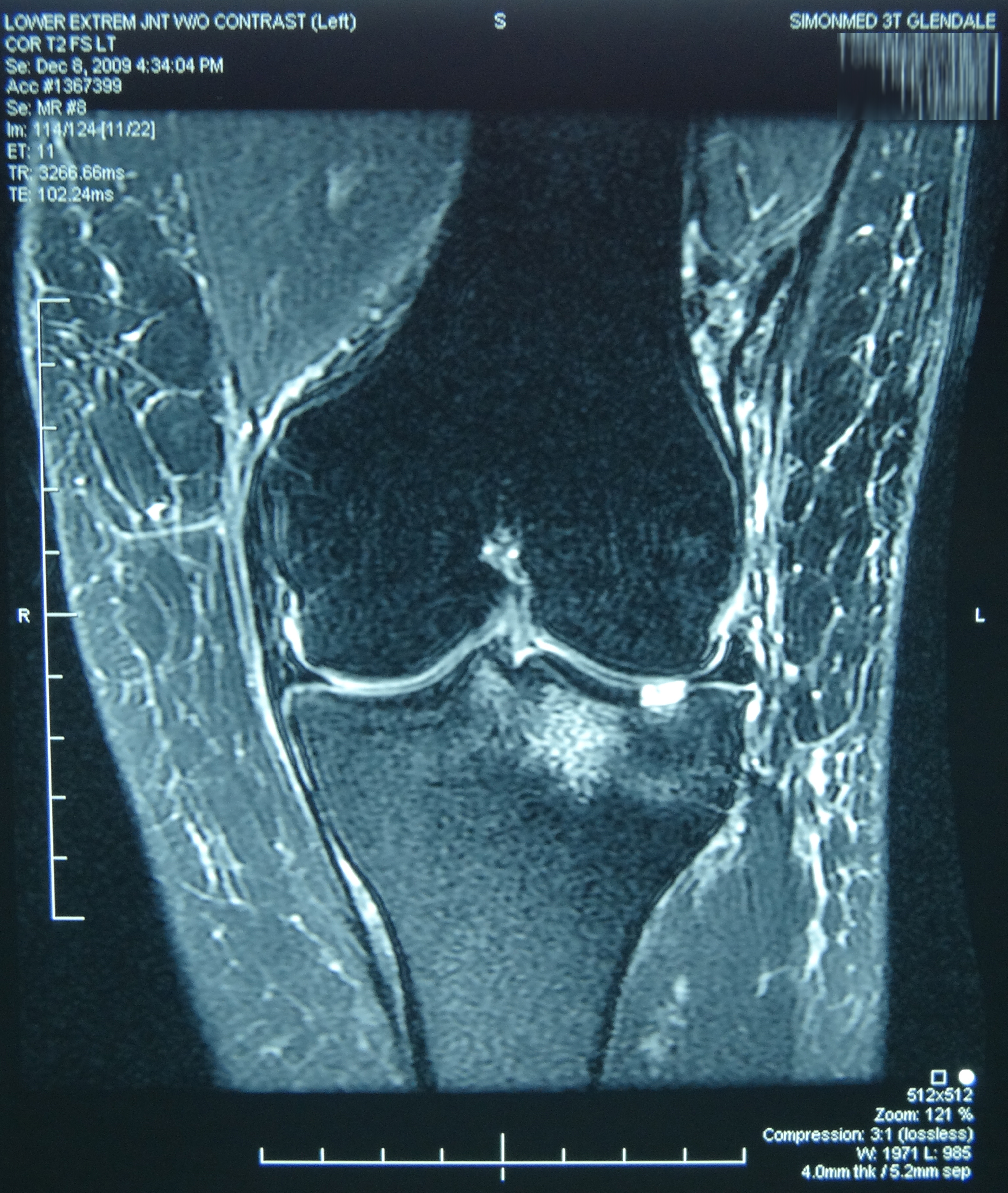 undersurface of the meniscal body and posterior horn segments. No chondral erosion or thinning. Intact root ligaments. - Intact anterior cruciate ligament. Normal posterior cruciate ligament. Intact medial