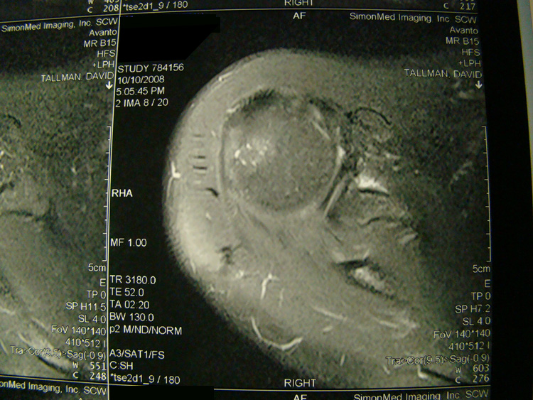 The patient underwent treatments of a highly specialized fine-needling technique pioneered by Dr. Tallman.The follow-up MRI was done 2 months after his 6th treatment. He was released with a pain-free, full range of motion with unrestricted activities.